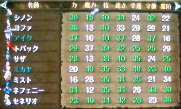 ヨファがいけてない…orz画面に出てるキャラはすべてLV20です。ちなみにここのメンバーで、